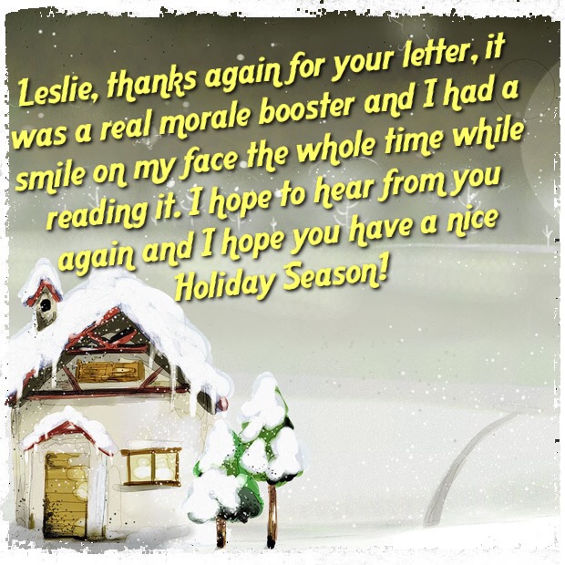 It was great to receive a letter from you today……actually the other day. We got a mail call and you were my only letter I received. Thank you!!!